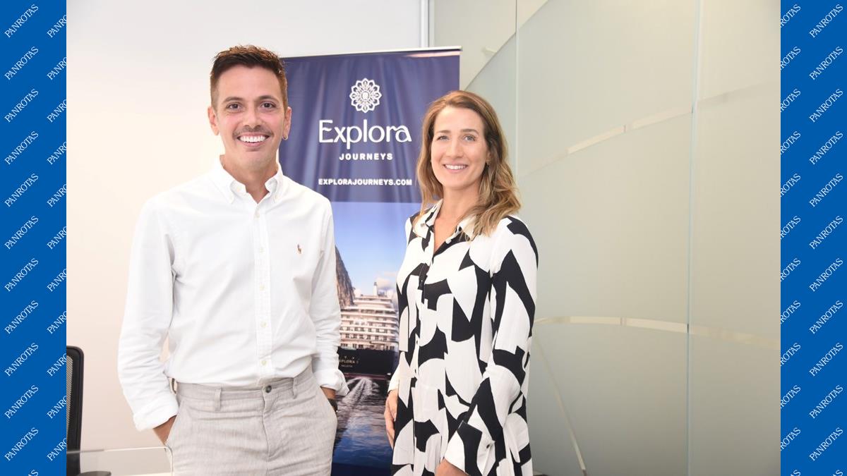 Flávio Corrêa, Business Relationship Lead, e Maria Fernanda Trentin, Marketing e PR Lead, representam a Explora Journeys no Brasil