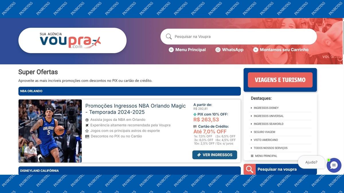 Site da VouPra segue no ar com oferta para atrativos em Orlando